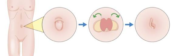 ‐手術はイラストの如く、臍部内側を切開していきます。