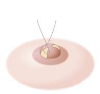 乳頭基部をドーナツ状に切除して、乳管のある中心部分は残して小さくします。