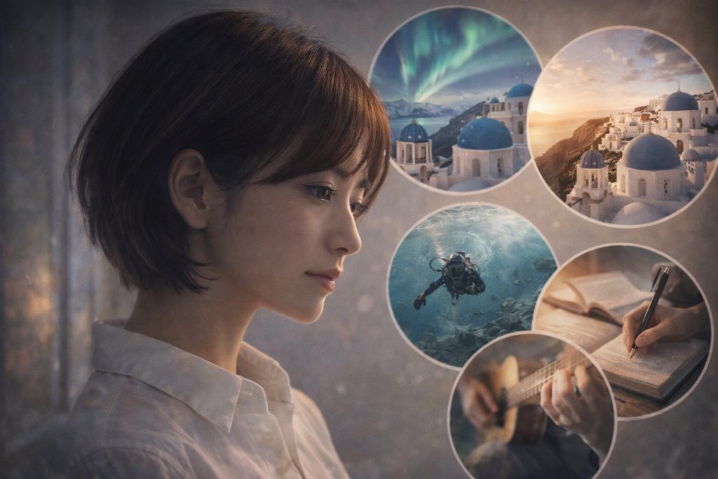日本ではあまり有名でないものの、米国でちょくちょく耳にするのが”バケットリスト”という単語で、その意味は死ぬまでにしたいことを書きだしたリストらしく、英語の”kick the bucket(死ぬ)”というスラングが語源となっていて”棺桶リスト”とも呼ばれるようですが(O_O)、一般人の”バケットリスト”第1位は世界旅行で特にカナダ・オーロラ観賞やギリシャ・サントリーニ島観光など、それ以外のバケットリストは語学習得・楽器演奏・ダイビング資格習得など現実的な内容が多いようです(^0^;)
