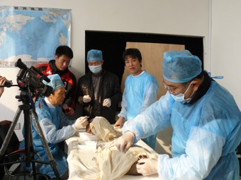 僕は解剖献体を用いて眼周囲の解剖を行った。この部位は小さいのでその模様を皆に間近で見せることは不可能なので、ライブビデオ撮影しながら会場にいる100名近い中国人医師たちに大スクリーンで示すのだ。