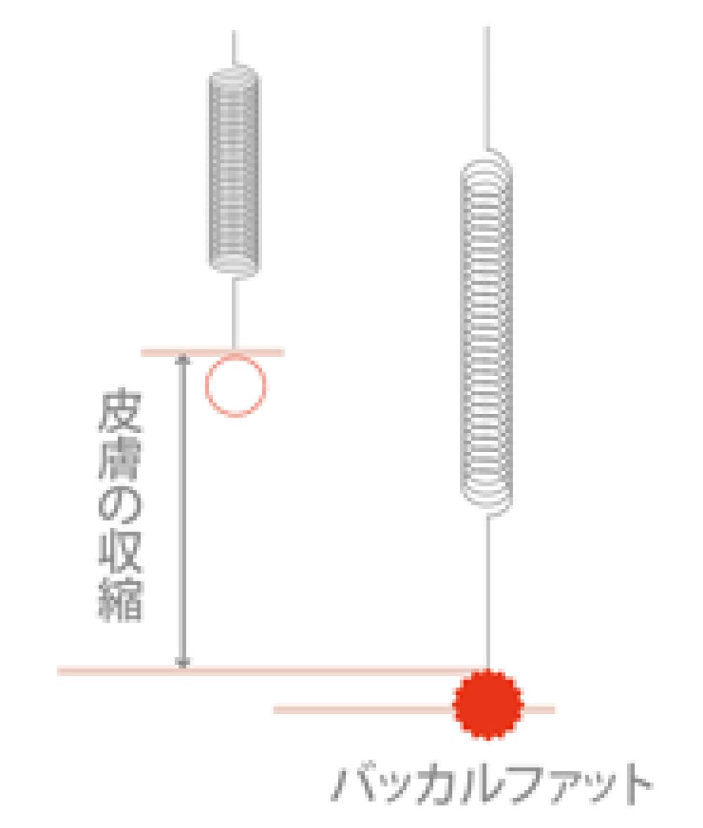バッカルファットが下垂している皮膚は「おもりでのびきったバネ」のようなものです。おもりを軽減するとバネが縮み元に戻るように、バッカルファットを軽減することで押し下げられていた皮膚も収縮します。基本的にたるみとして残存する心配はありませんので、スッキリと美しいフェイスラインを手に入れていただけます。
