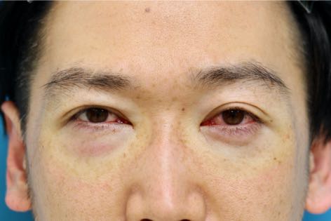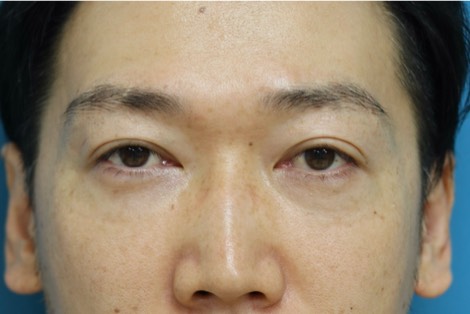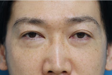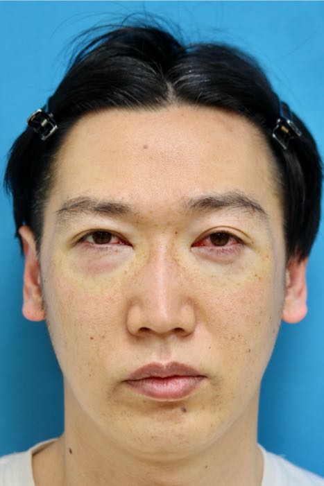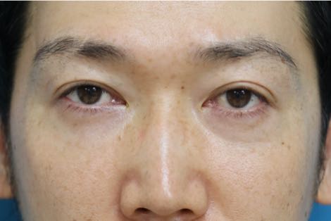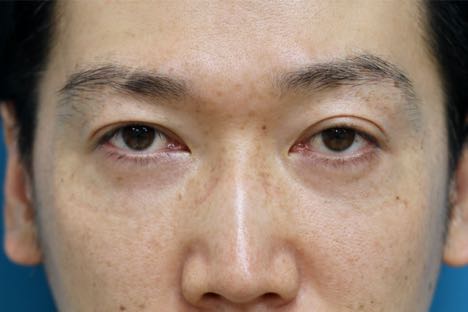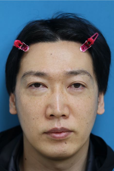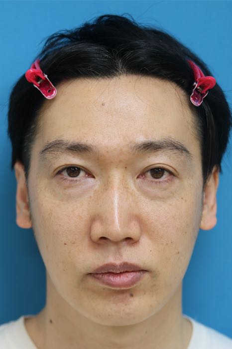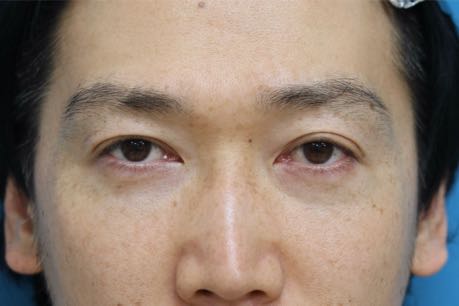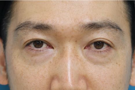 治療前写真-1,2では軽度〜中等度の下瞼たるみを認め、症状は右<左であること、また本症例の特徴として下瞼外側に余剰脂肪が存在します。