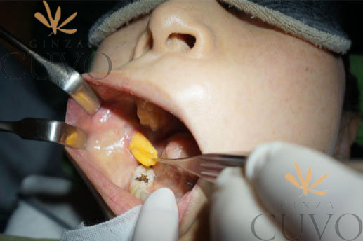 この患者さんは43歳と本格的フェイスリフトを行うにはまだ若いことや、本人の希望で皮膚切開を用いた治療は望まないことから、口腔内アプローチによるバッカルファット軽減術を行うこととしました。