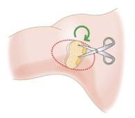 下段イラストの如く皮膚を反転させ、アポクリン汗腺を除去します。(反転剪除法)