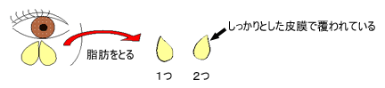 下眼瞼脂肪は3個の房状の固まりから構成されています。