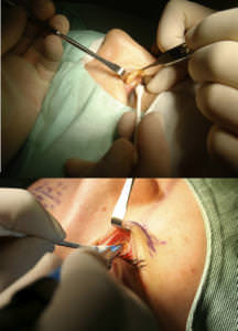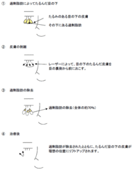 他院の医師:「その方法では、症状がまた数年で元に戻りますし、皮膚にしわや、くぼみが発生する可能性がありますから、やめた方が良いでしょう。目の下のたるみ治療には下眼瞼皮膚を切開する方法が良いです。この治療を行いましょう。」