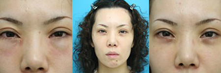 これらの患者さんは、目の下のクマ(くま)に対するさらなる改善策を模索した結果、最終的に手術的治療を選択せざるを得なかった。そういった患者さんに、経結膜的下眼瞼形成術により、目の下のクマ(くま)の解剖学的原因を根本から修正した結果、ようやく期待する結果が得られた。このことからも目の下のクマ(くま)の原因は、下眼瞼色素沈着症や血行障害よりも、むしろ下眼瞼の解剖学的不具合が主な原因があることが示された。